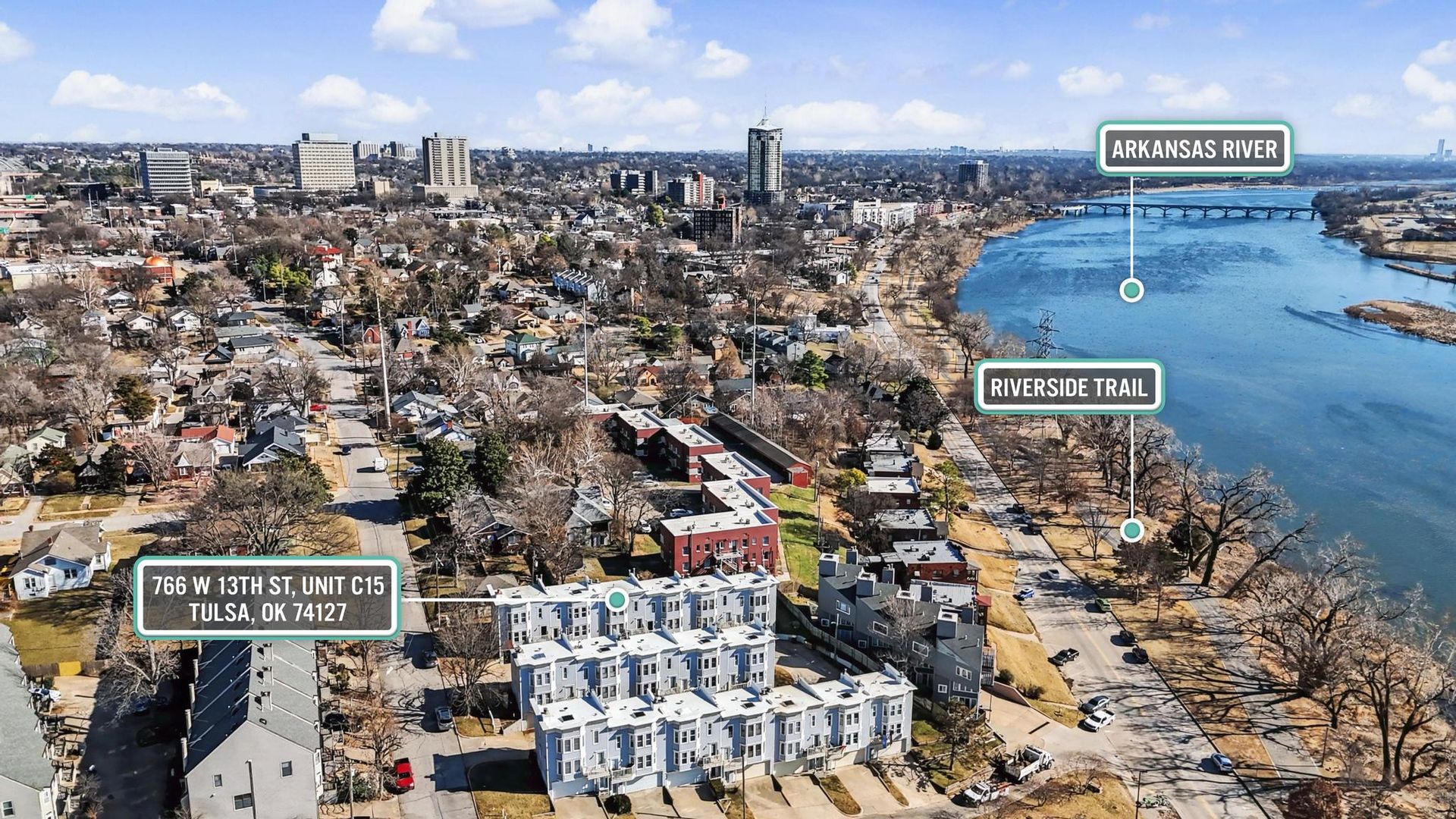 HOA covers exterior maintenance, trash, water, sewer, and termite treatment as needed. Prime location minutes from River Trails, The Gathering Place, Downtown Tulsa, and Cherry Street.