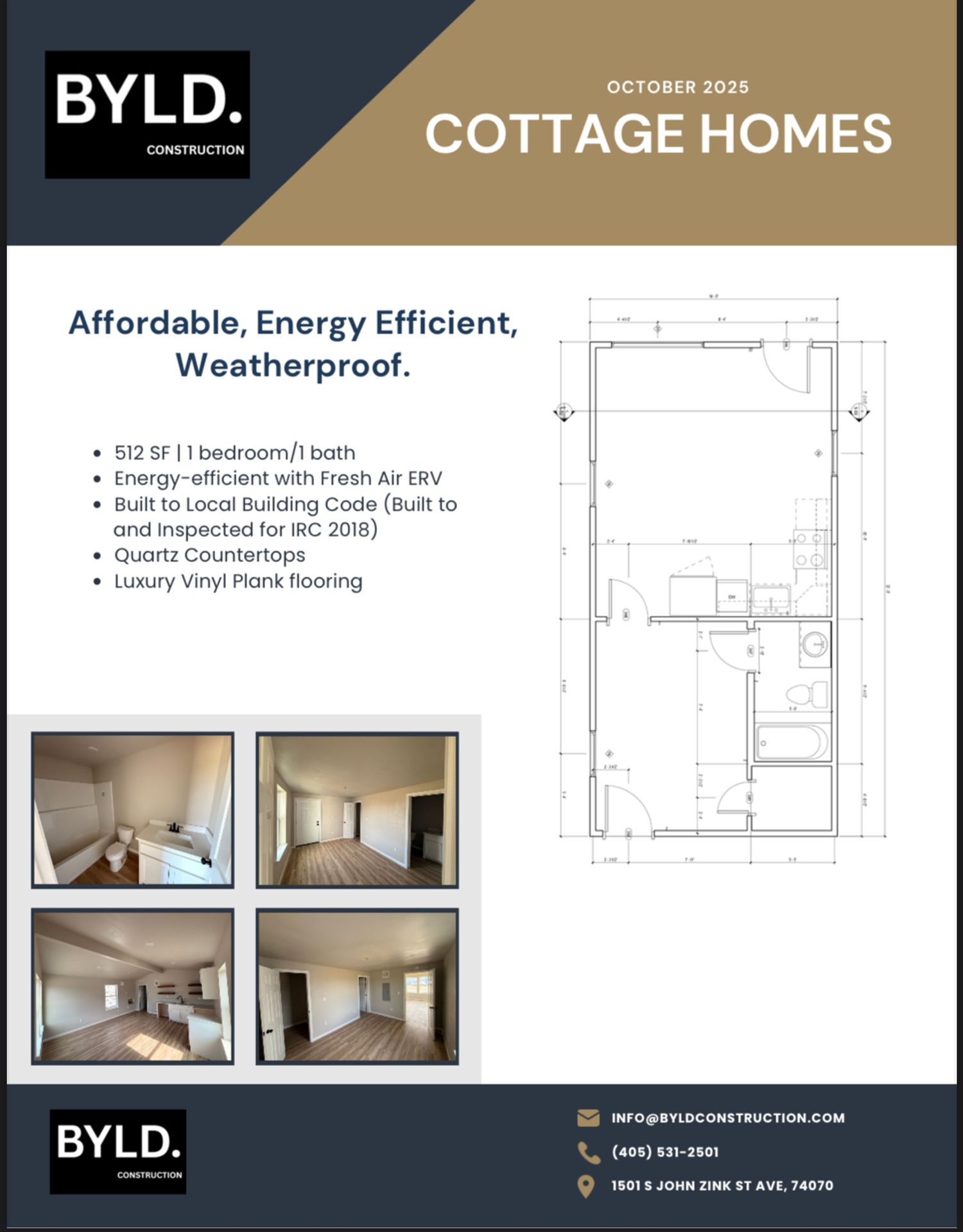 Discover modern tiny living with big comfort in this 512 sq. ft. 1-bedroom, 1-bathroom home. Thoughtfully designed with energy-efficient features and a Fresh Air ERV system, this home offers a clean, comfortable, and sustainable living experience. Enjoy quartz countertops, luxury vinyl plank flooring, and an open-concept layout that maximizes every inch of space.